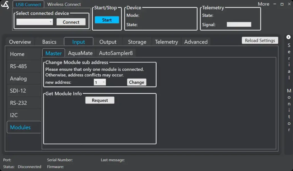 - Ensure only one Module is connected when changing the address